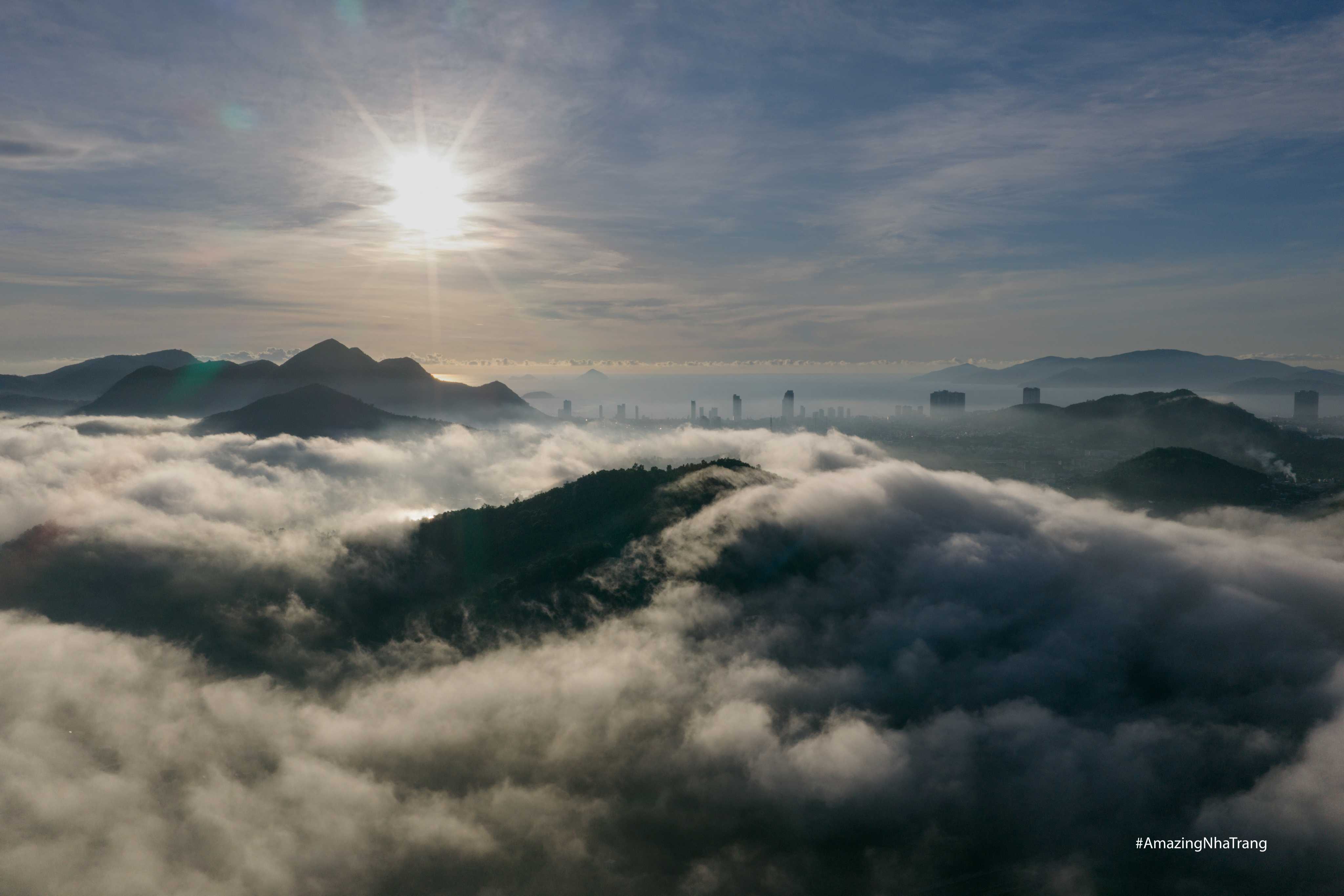 Ngắm thành phố Nha Trang từ trên cao: Toàn cảnh thành phố và biển xanh hiện ra rõ nét, đặc biệt ấn tượng khi nắng ban mai chiếu xuống.