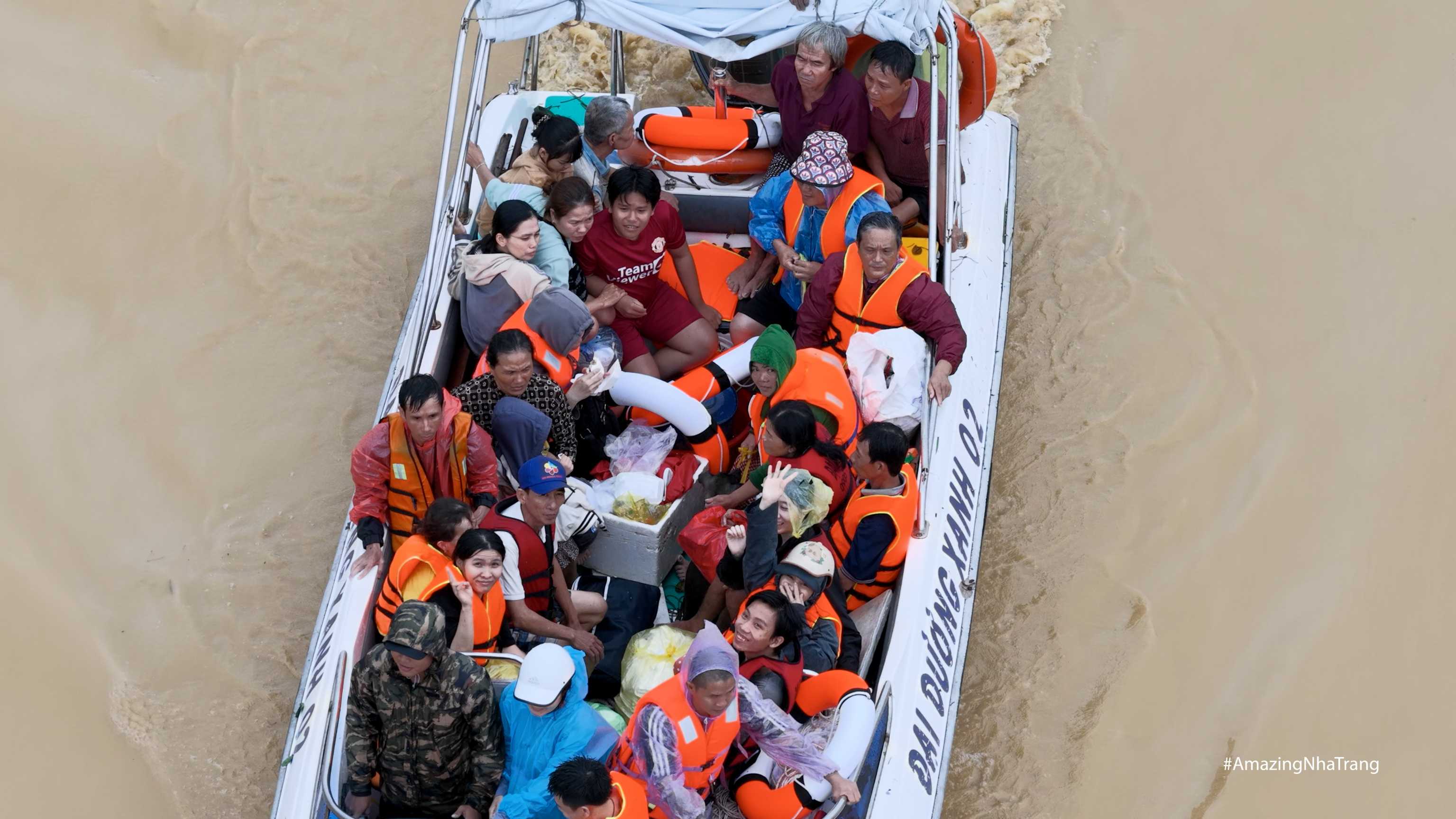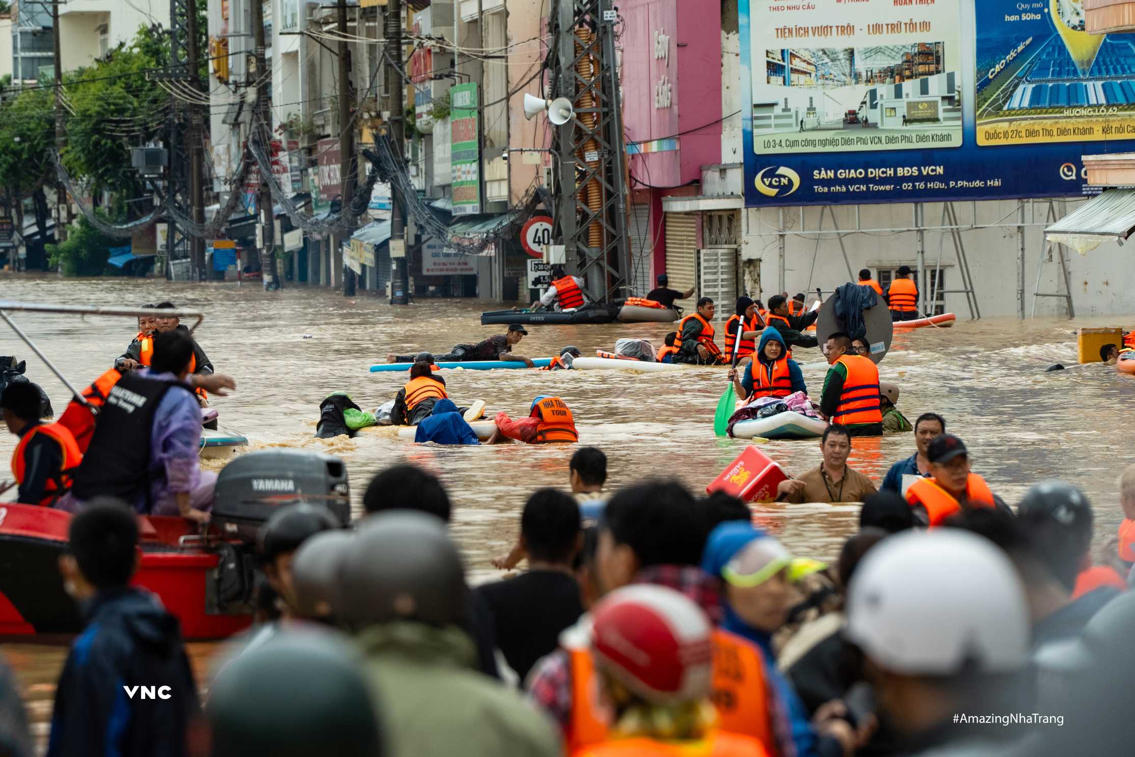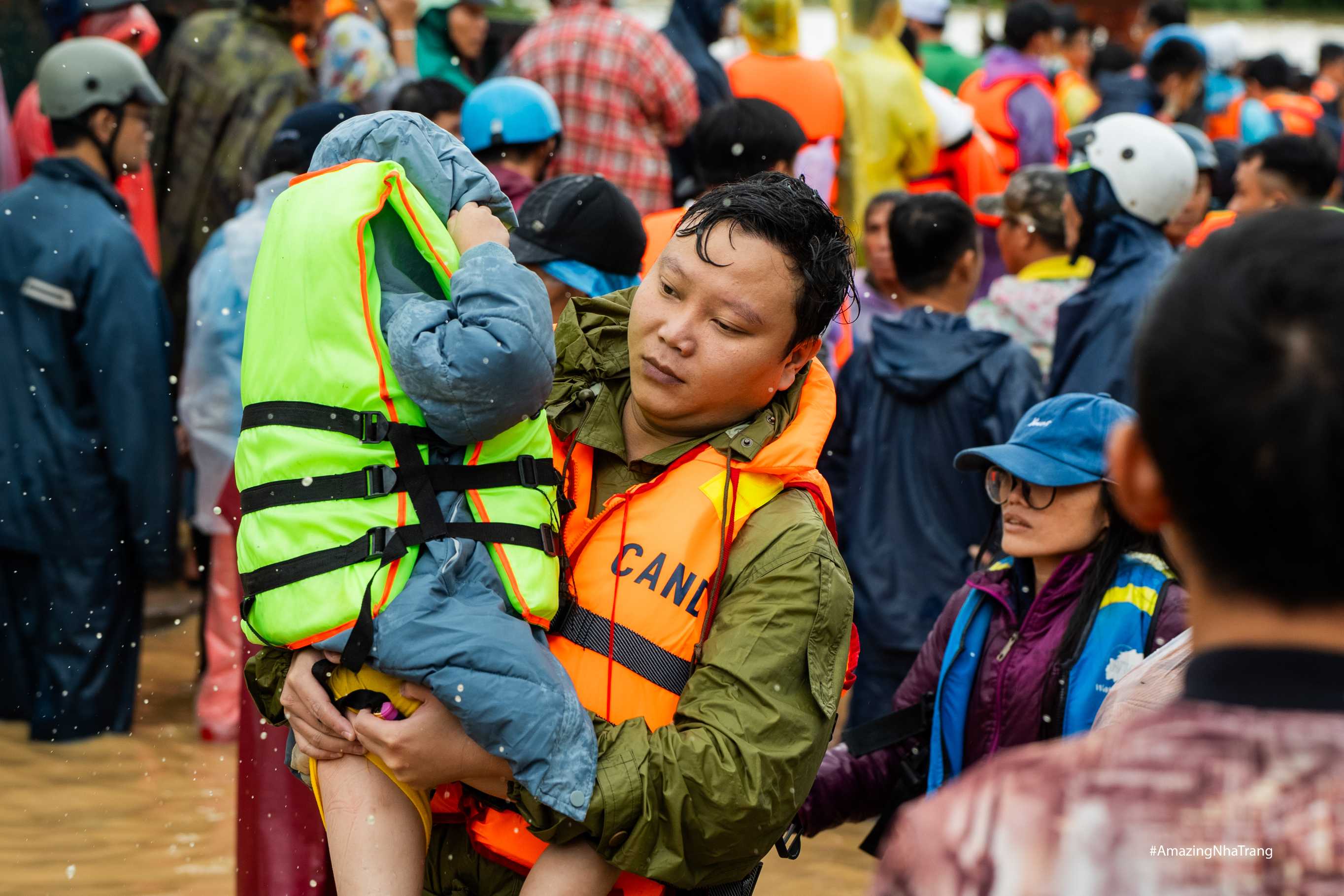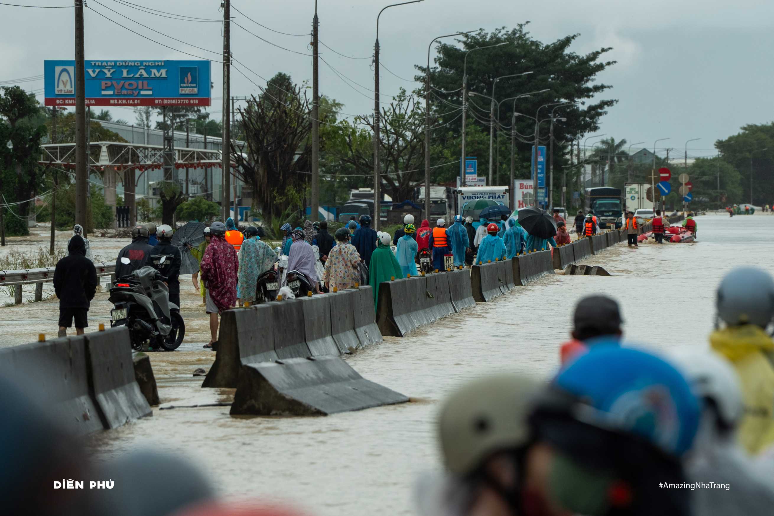 Các xã vùng trũng ở Nha Trang và khu vực lân cận bị ngập sâu, giao thông tê liệt, nhiều hộ dân mắc kẹt trong dòng nước đục ngầu. Trong hoàn cảnh khó khăn ấy, hình ảnh những lực lượng tuyến đầu vẫn kiên trì bám địa bàn, nỗ lực từng phút để tiếp cận và hỗ trợ bà con khiến ai nhìn cũng xúc động.
